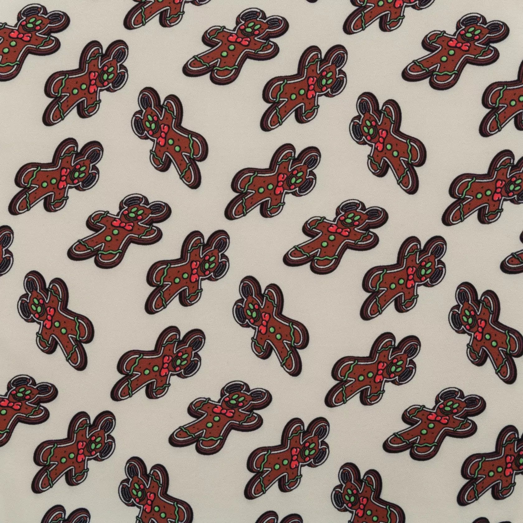 - Exterior front zip pocket with front of house featuring art of Mickey Mouse gingerbread cookie